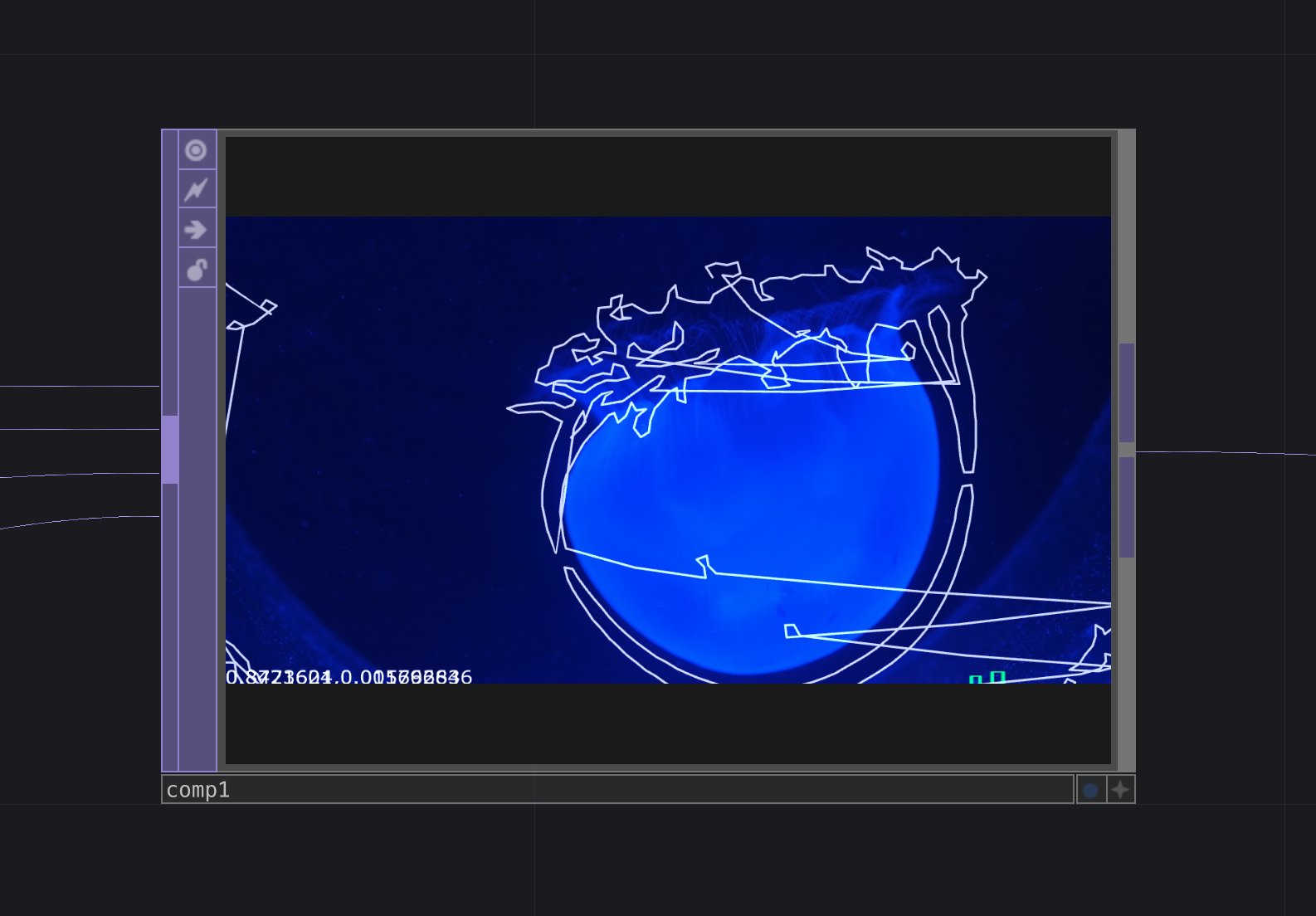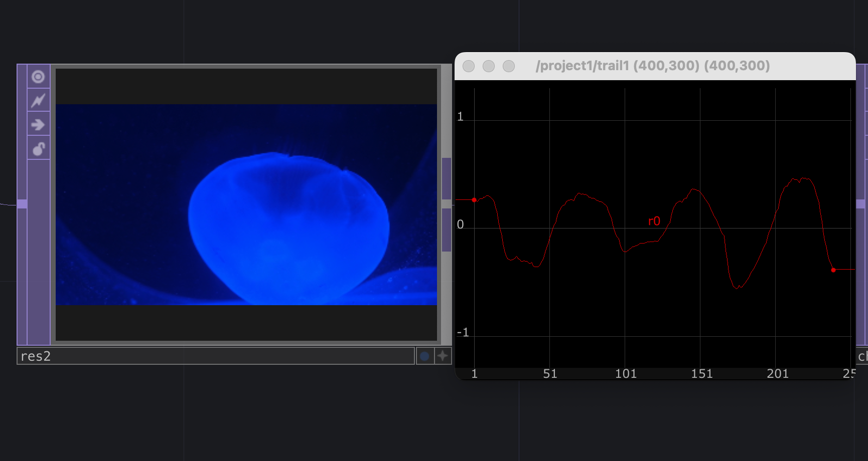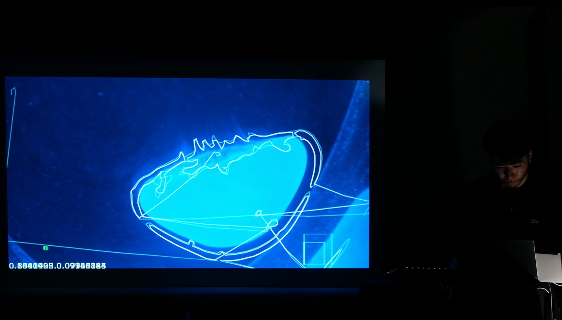 本作品は、クラゲの拍動を「波」として可視化・音響化する新たなシステムを用いたオーディオビジュアル・パフォーマンスである。Sonic Rhopalia (2023,2024)で開発した従来の拍動検出に加え、触手などの微細な運動を検出可能にすることで、クラゲ全体の呼吸のような「面積の揺らぎ」をリアルタイムに捉えることを可能にした。クラゲの身体が拡張する瞬間(+1)と収縮する瞬間(−1)が波として空間に描かれ、その波形が音として響く。
