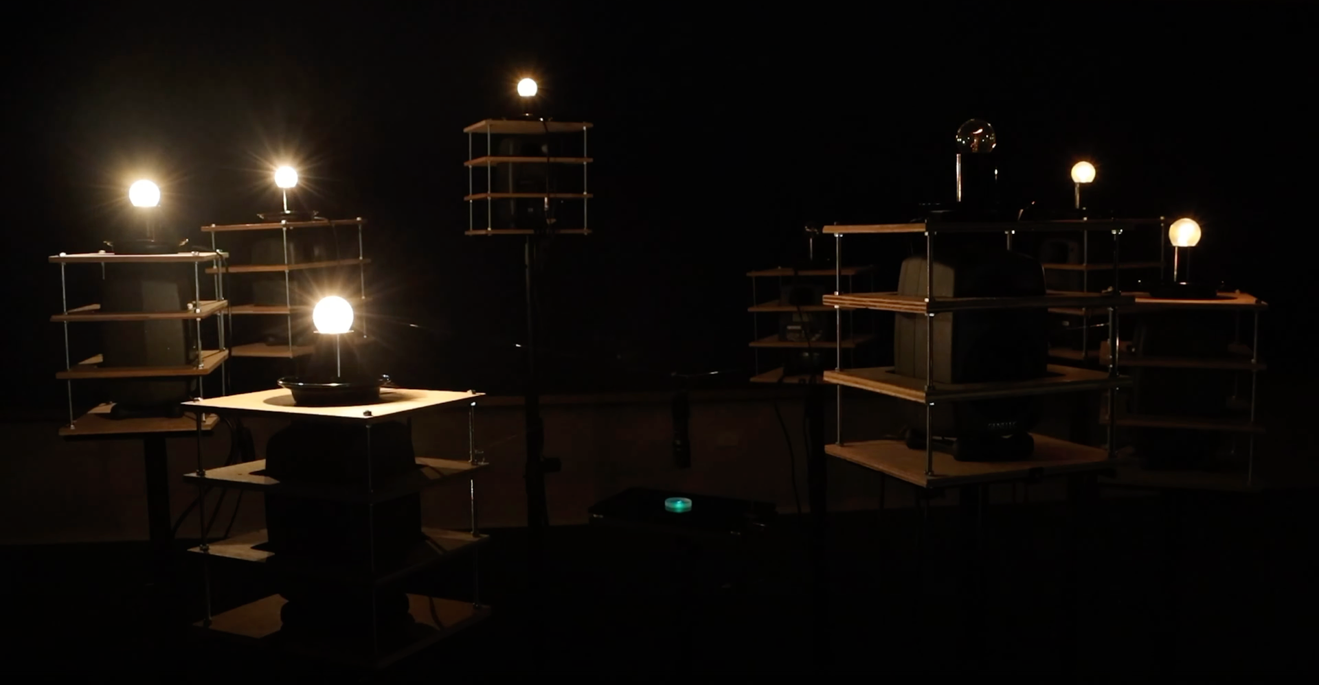 本作品は、生命と物質の境界に位置づけられる“準生命”のような存在の振る舞いを、音と光へと変換するインターフェースである。物質から徐々に立ち現れる生命性を、聴覚と視覚を通して表現することにより、鑑賞者に「生命とは何か」という問いを投げかける。